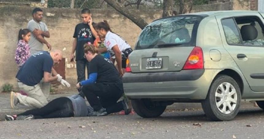 El episodio fue presenciado por varios testigos, quienes rápidamente se detuvieron para auxiliar a la víctima, una mujer de aproximadamente 40 años, que quedó tendida sobre el cordón con múltiples golpes, escoriaciones y heridas visibles en el rostro, presuntamente por el impacto contra el pavimento.