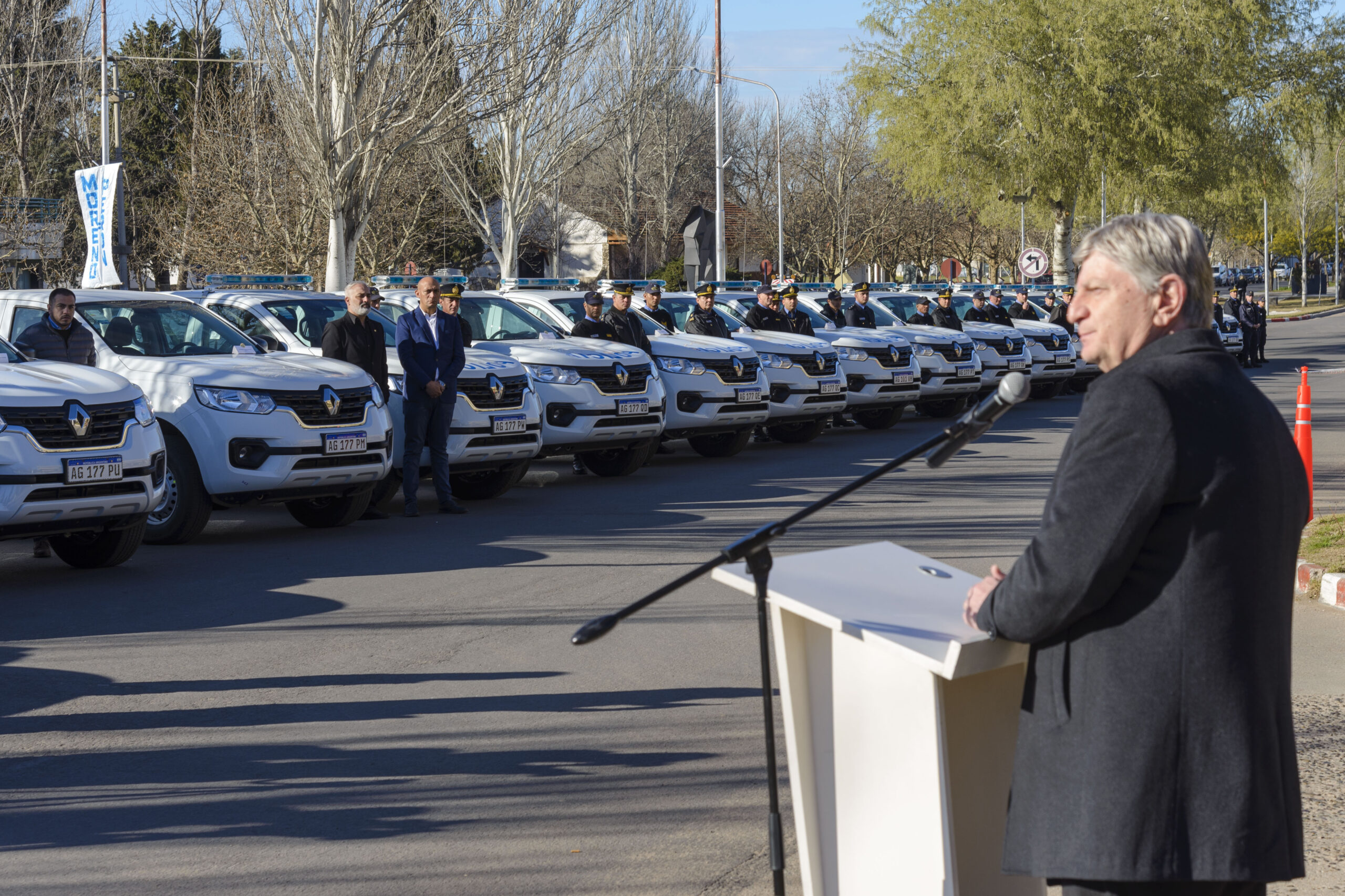 La ceremonia se llevó a cabo en la Avenida Spinetto, frente al Ministerio de Seguridad, y contó con la presencia del vicegobernador, Mariano Fernández; la vicepresidenta de la Legislatura, Alicia Mayoral; el ministro de Gobierno, Justicia y Derechos Humanos, Ariel Rauschenberger; el ministro de Seguridad, Horacio di Nápoli; y intendentes y presidentes de Comisiones de Fomento de las localidades beneficiarias; diputados y diputadas provinciales y representantes gubernamentales.